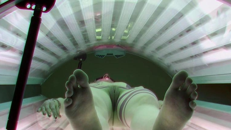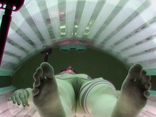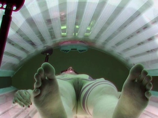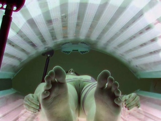Tattooed redhead getting a tan