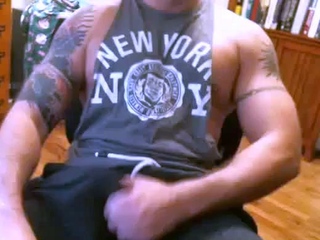 Muscle Hunk Strokes His Big Cock After Intense Workout