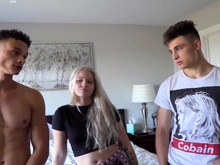 Fit blonde threesome anal action
