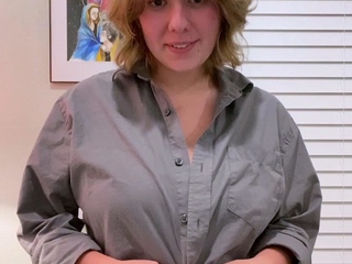 Busty curly brunette with big boobs fucks on couch