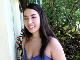 Lovely Amateur teen brunette masturbating outdoor