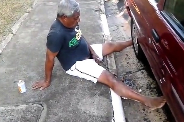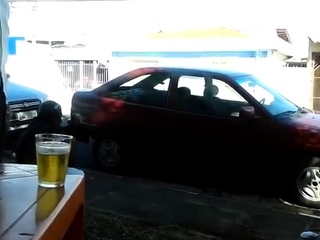 Pinguco mijando na calcada do bar