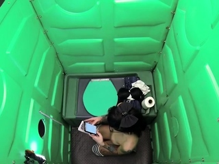 Banheiro químico virou cabine erótica e a putinha mamou