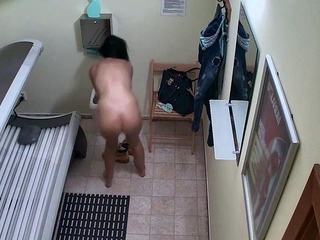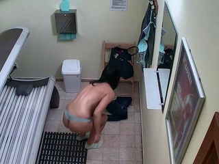 Sexy MILF masturbating in solarium