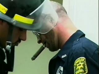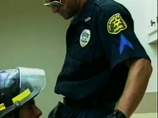 The horny fireman shows the gay cop how to put out a pecker fire