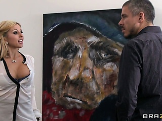 Hot blonde with adorable tits and a spicy ass gets in the shower with a young stud