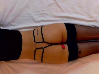 Sexy brunette wearing stockings masturbates webcam