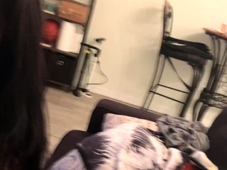 Amateur busty brunette masturbates and does hand job