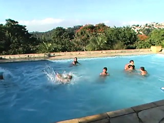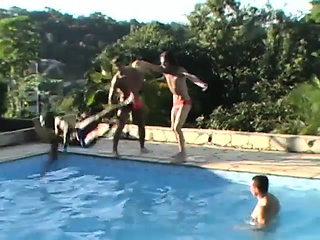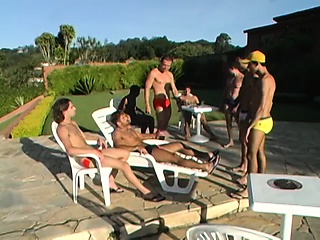 Handsome men have fun at the pool after fucking each other raw