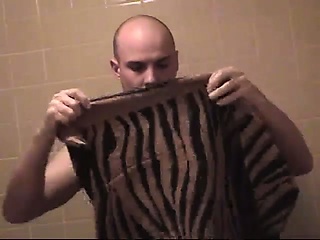 Bald guy lays back in bed after a shower to jack off in the nude