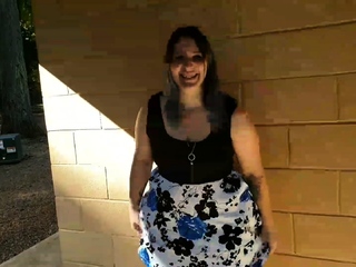 In a kitchen a sexy brunette playing with her big boobs
